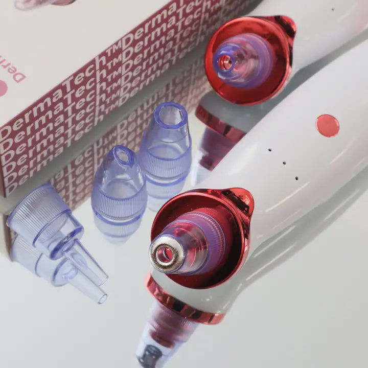 At-home microdermabrasion has never been so easy! Unclogged pores, visibly reduced pore size, and noticeably clearer skin. Say hello to clear skin with DermaTech! The DermaTech Microdermabrasion Kit uses a popular treatment of microdermabrasion, exfoliation and smooth suction technology to gently remove dead skin cells, cleanse pores, boost collagen production, and promote the growth of new healthy skin cells.